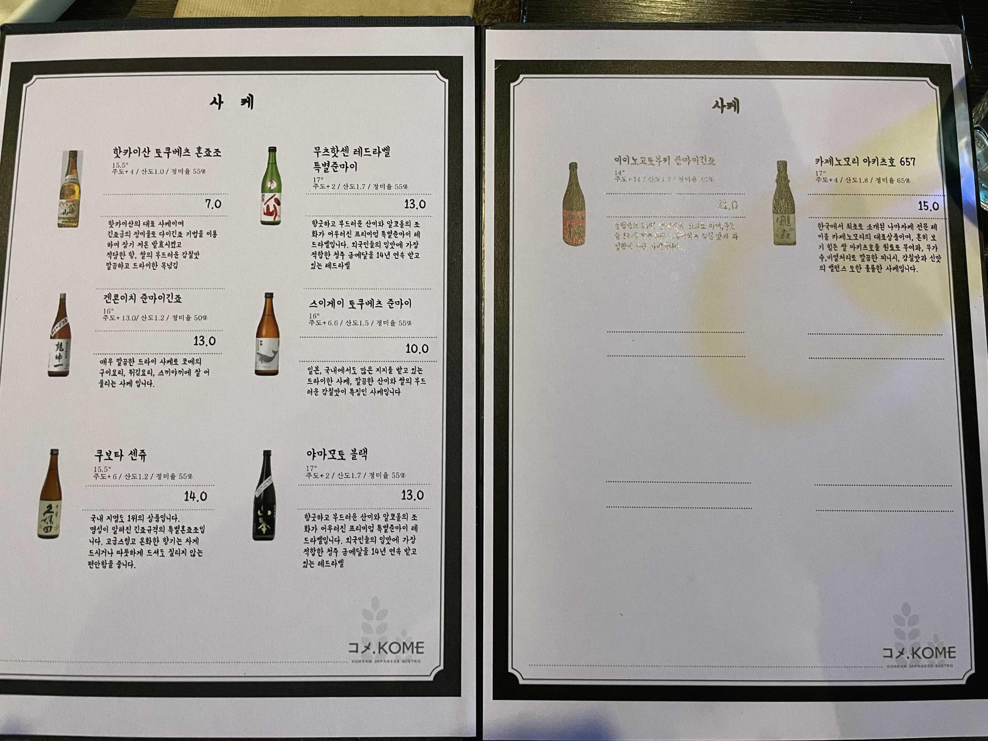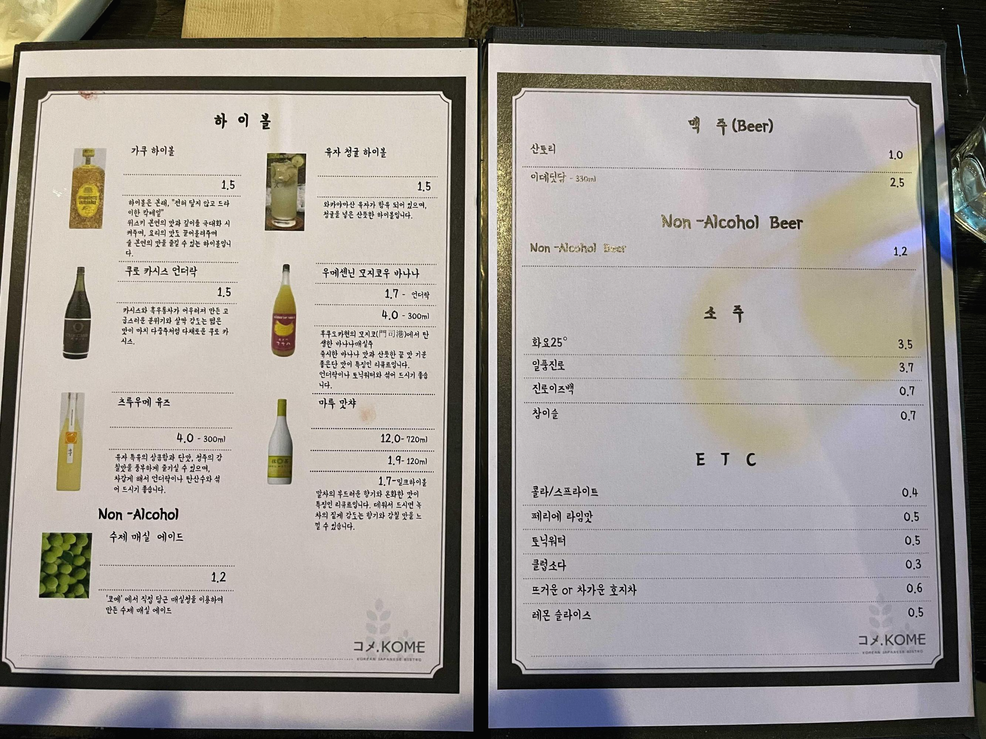 저는 일본 소주가 먹고 싶어서 검색 끝에 코메를 찾게 되었어요.
