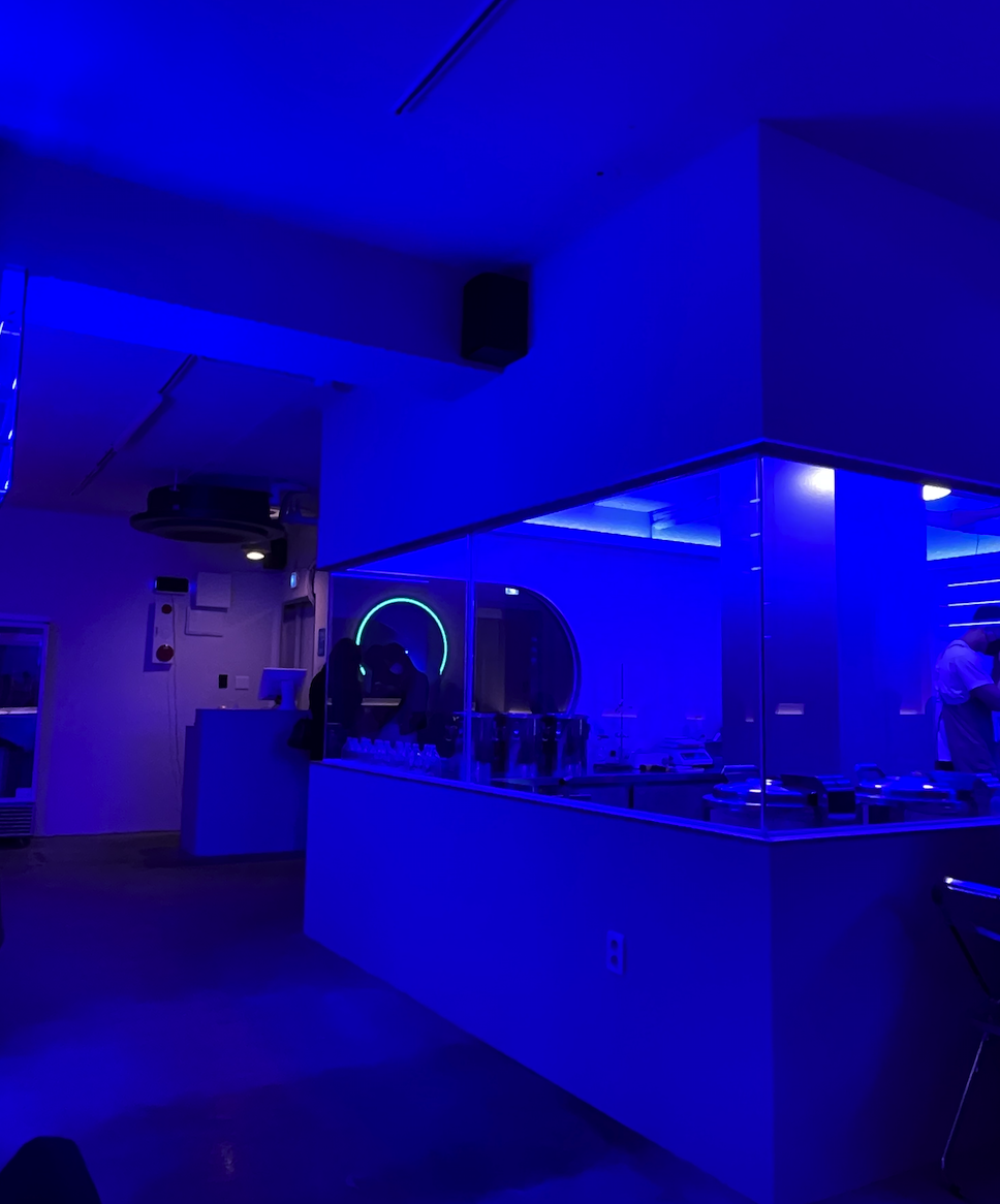 송리단 양조장의 첫 인상은 뭔가 실험실 같은 느낌이었는데요, 조명이 전체적으로 파란 빛이 엄청 엄청 강했어요.